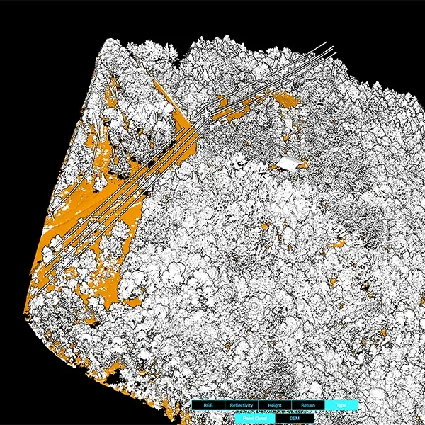 Grazie alla tecnologia Lidar in un’unico rilievo è possibile catalogare in layer il terreno suddividendolo tra terreno, vegetazione e artefatti urbani.